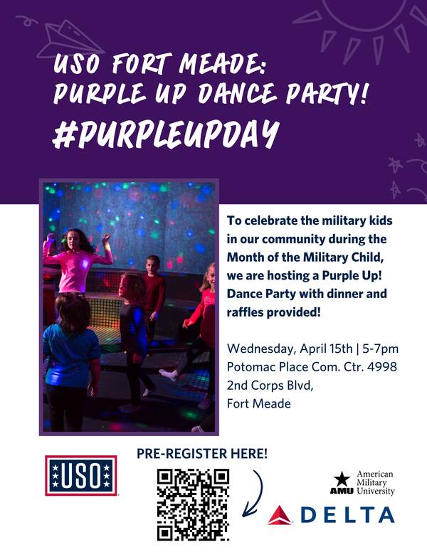 To celebrate the military kids in our community during the Month of the Military Child, we are hosting a Purple Up! Dance Party featuring dinner.