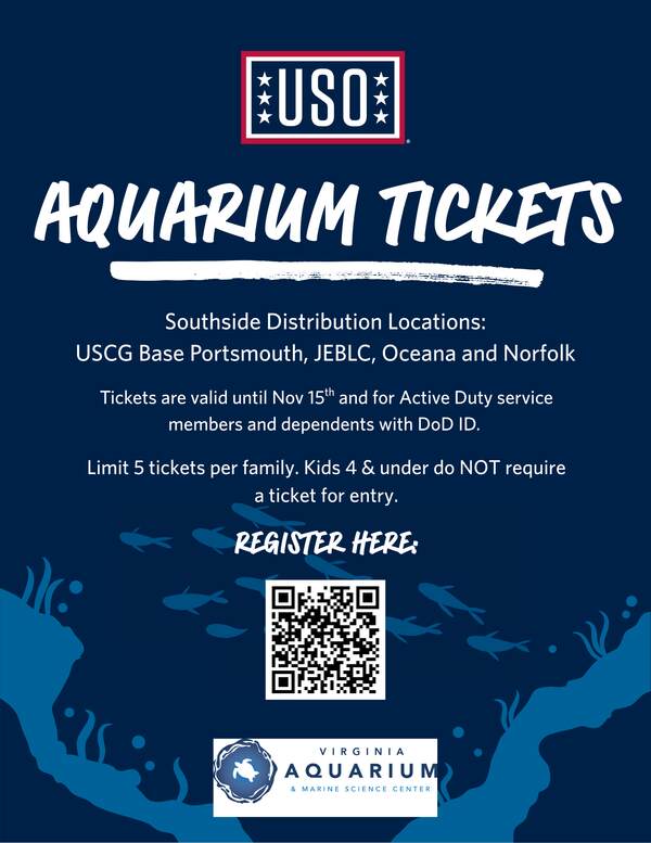 ANY QUESTIONS/CONCERNS regarding USO Norfolk Aquarium Tickets, please DIRECT TO abouwkamp@uso.org to help mainstream inquiries (please do not call). Please allow 24-48 hrs for a response. Emails will be answered in order received