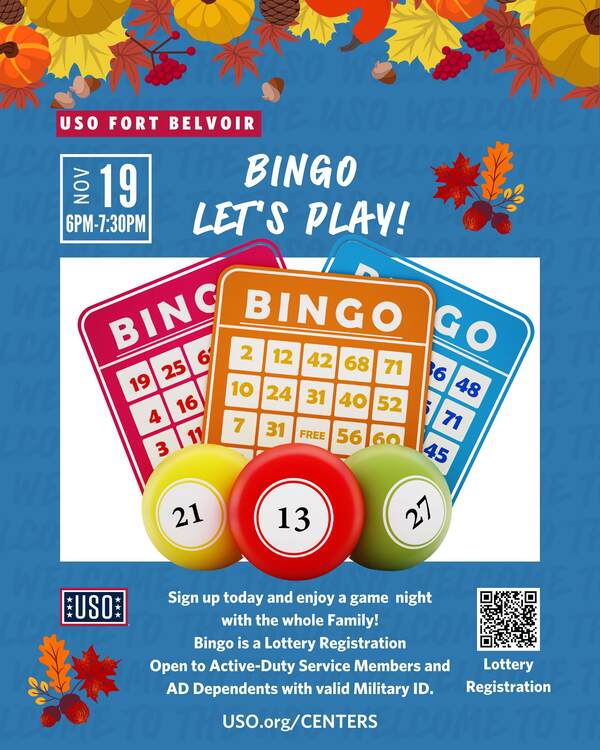 This monthly program is perfect for the entire family. Guests are invited to play bingo, dinner provided by Mateos McDonalds, meet other families in the area, and have a chance to win some fun prizes. This is a lottery event and registration is required. Open to Active-Duty Service Members and AD Dependents with valid Military ID.